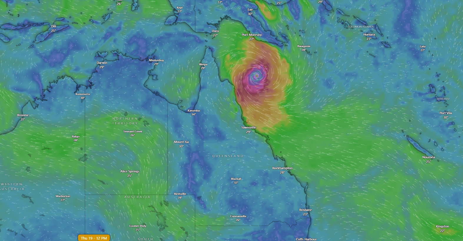 Category five. Bringing widespread destruction. Almost all the trees have already fallen down, roofs are failing and walls are collapsing. Remember Cyclone Yasi in 2011? This is just like that.